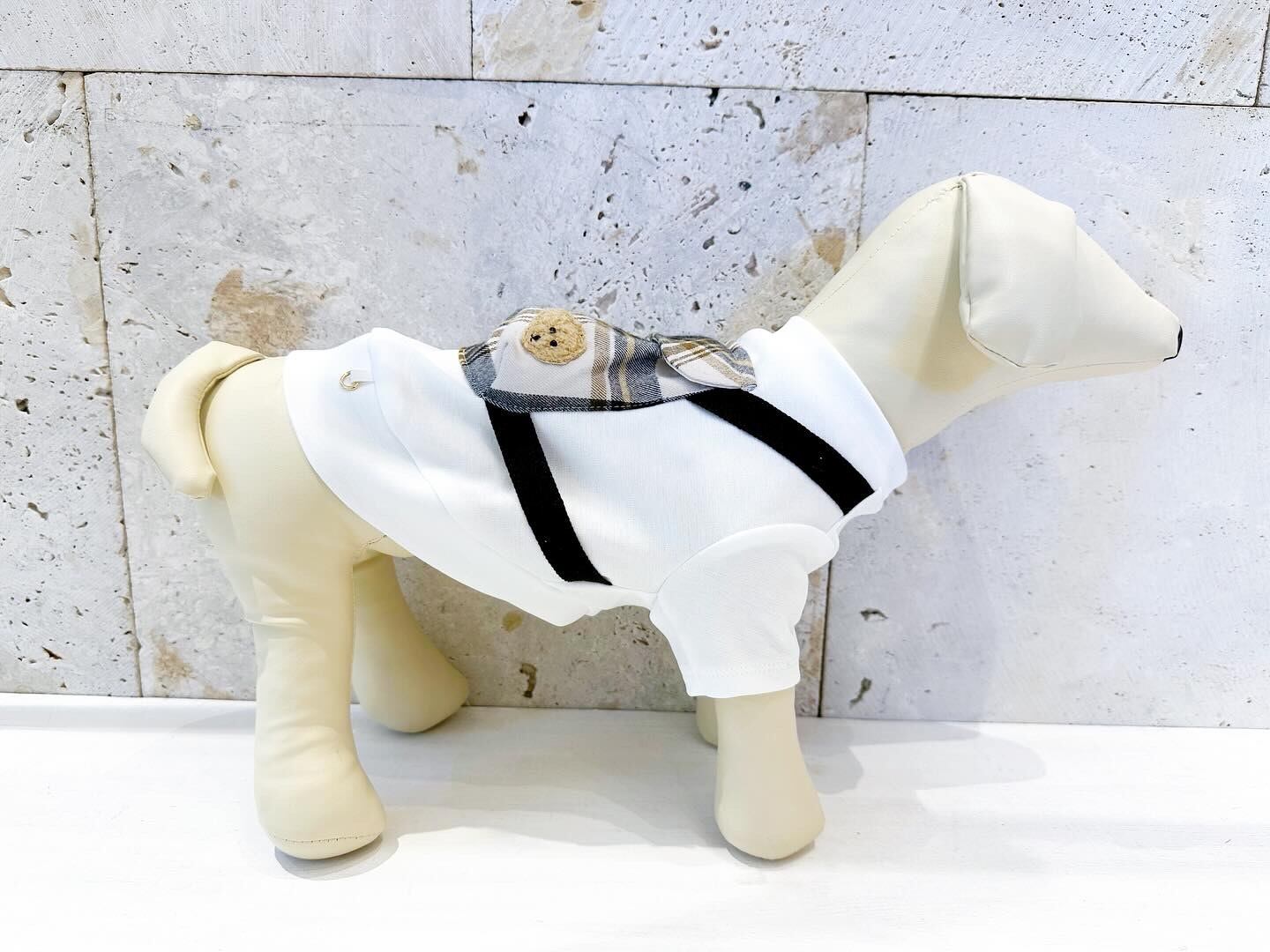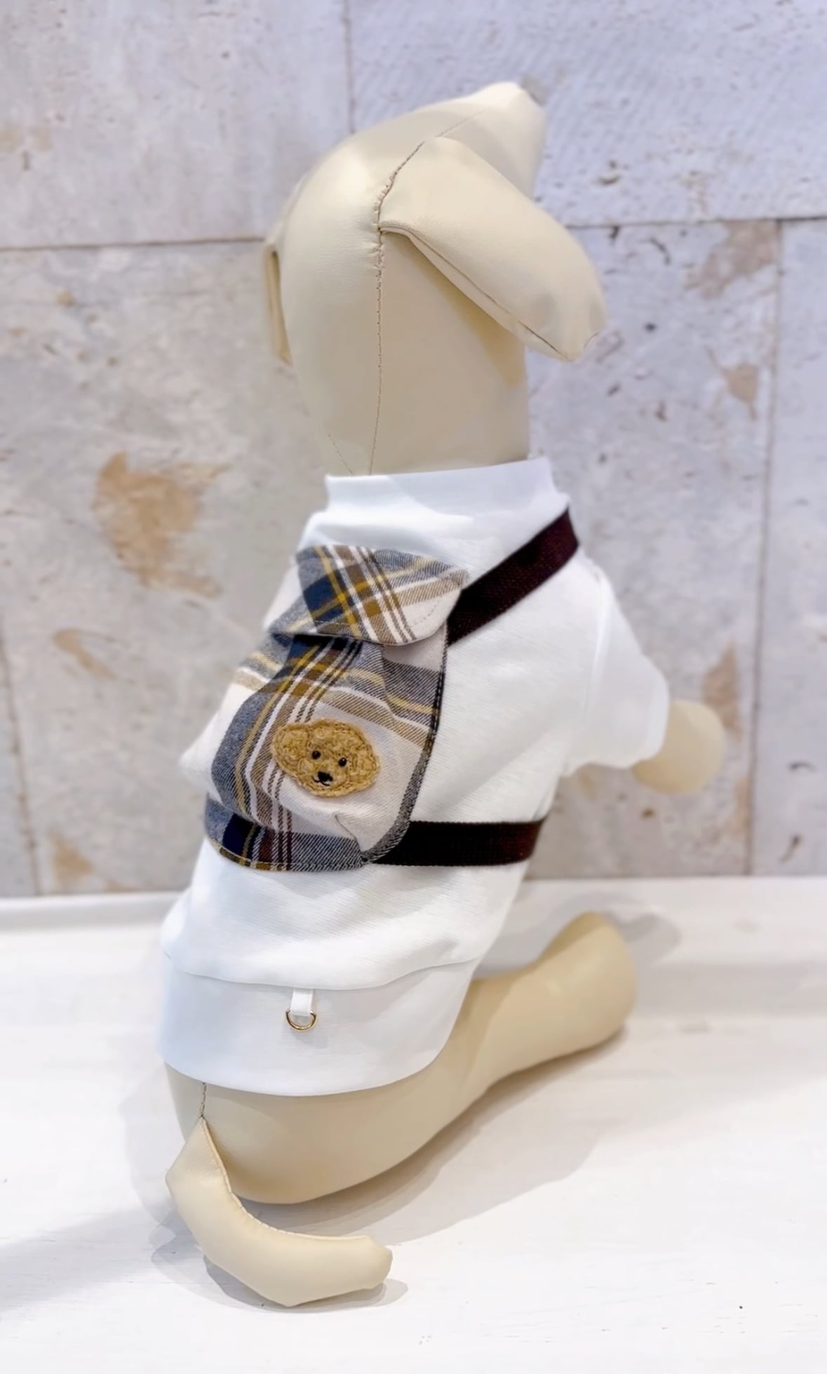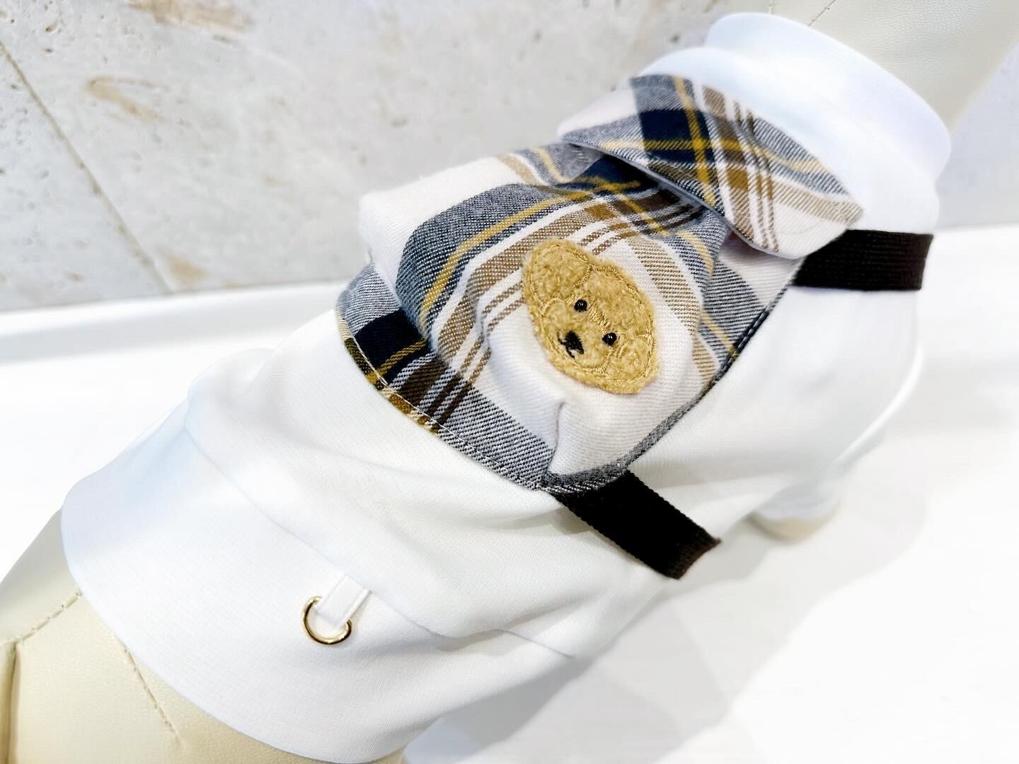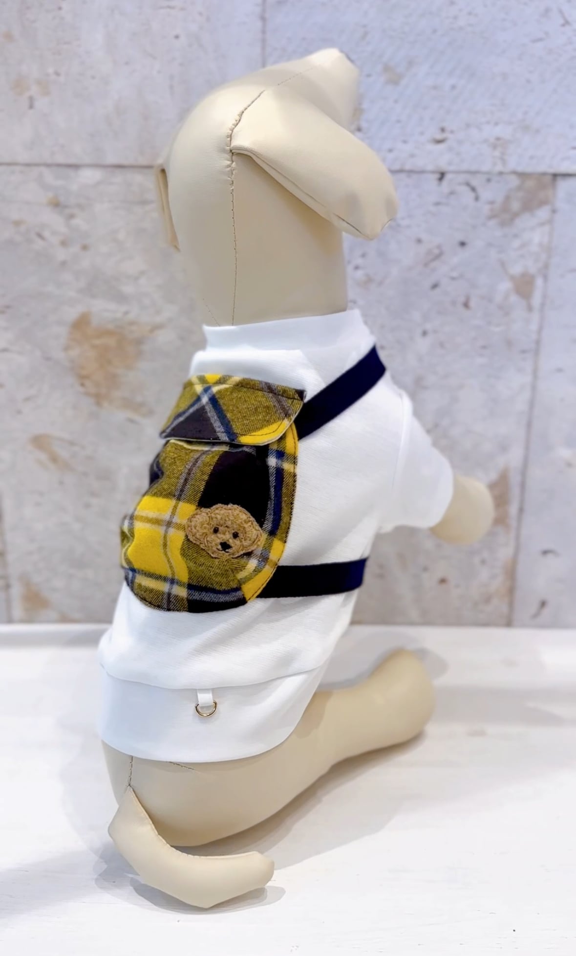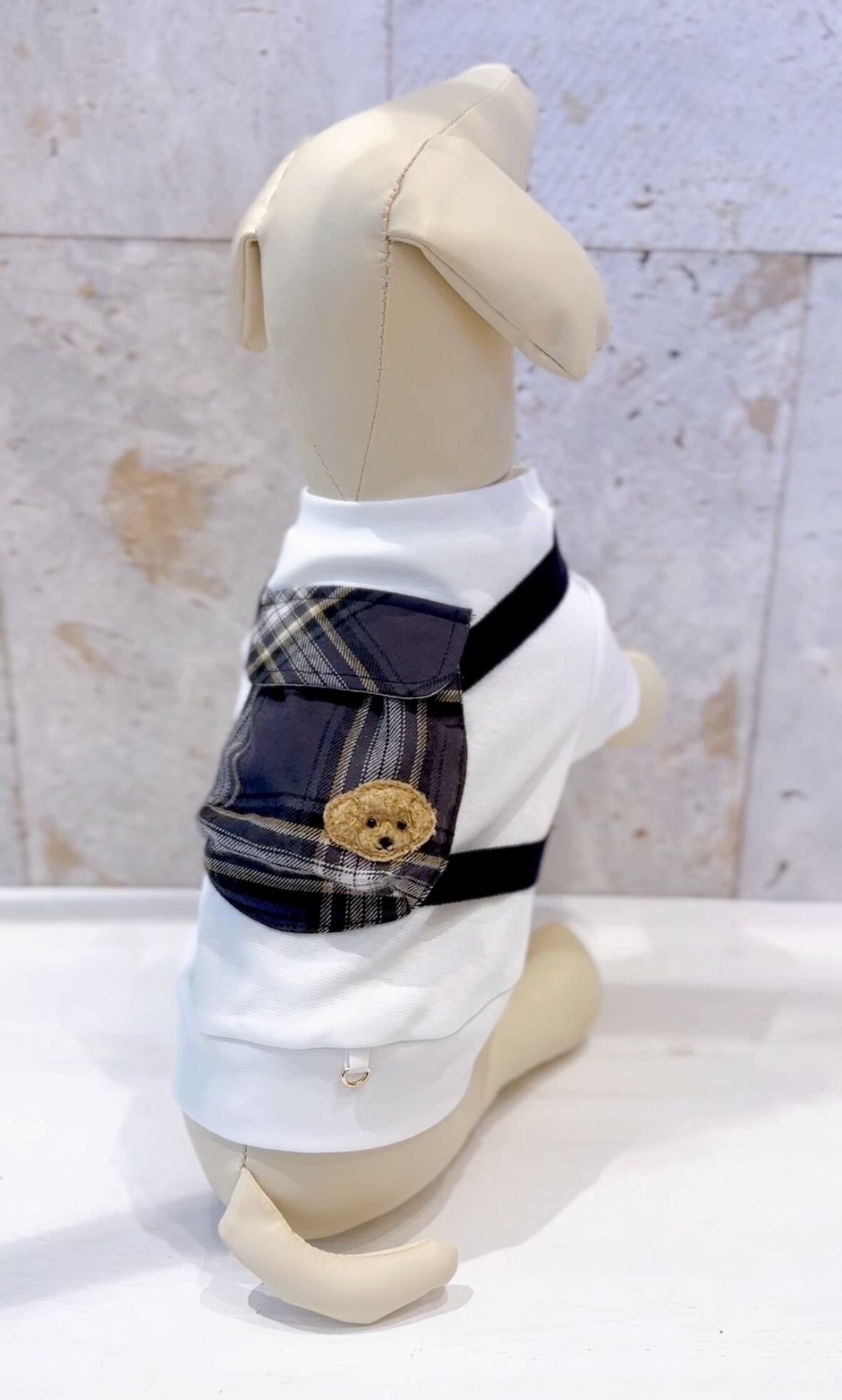 犬服用のワッペンチェックリュックTシャツになります。こちらは《袖ありタイプ》になります。