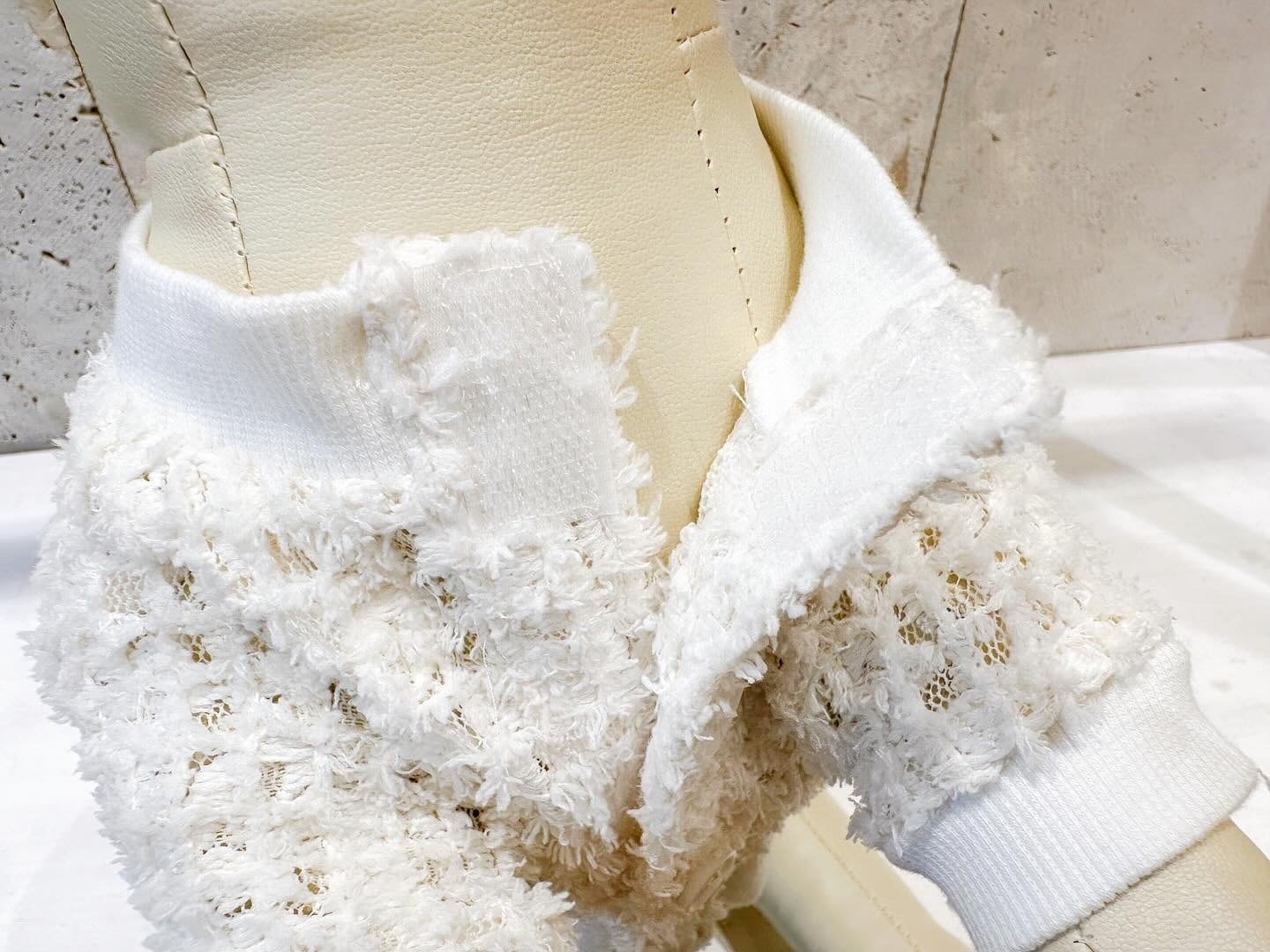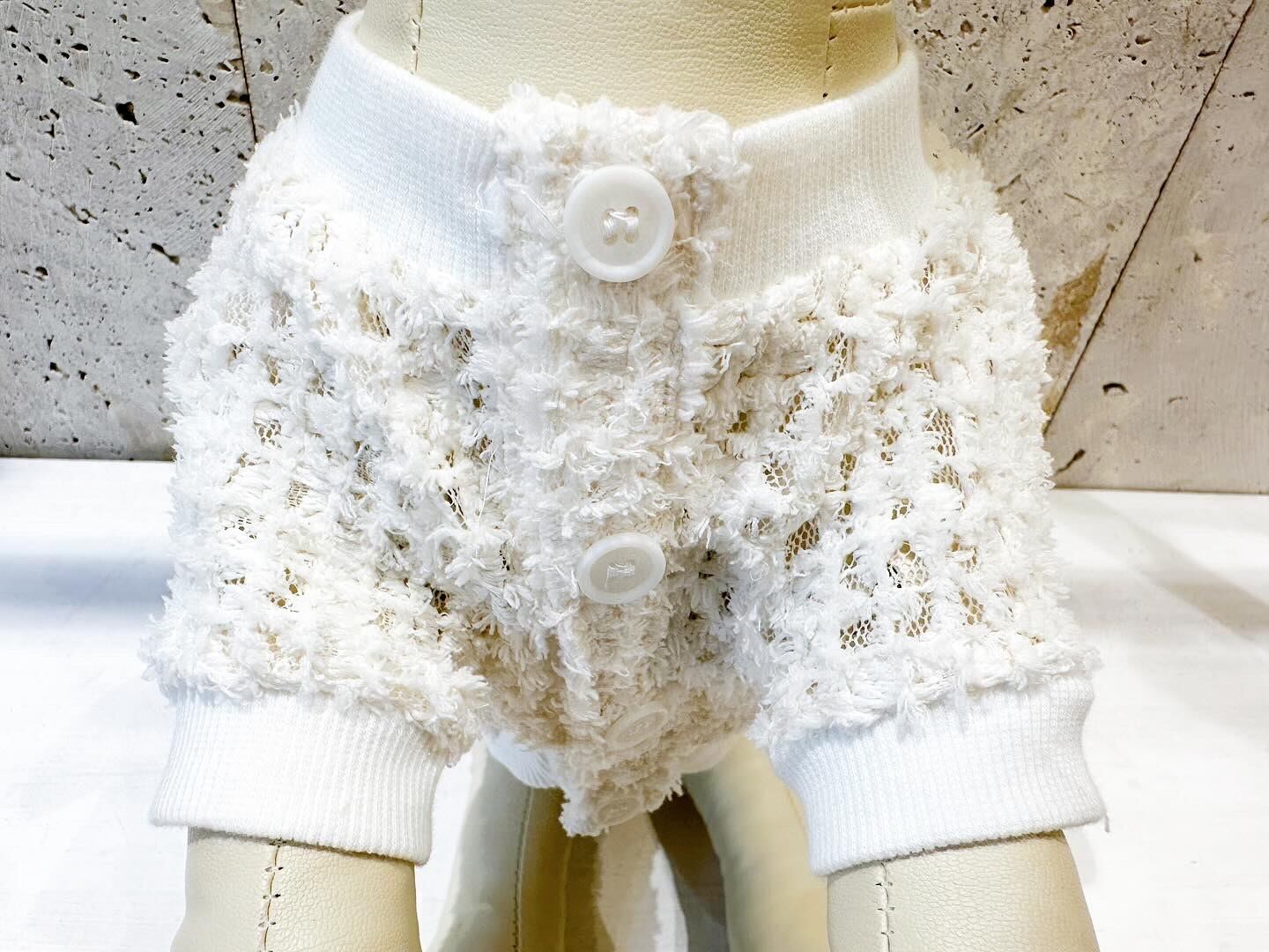 ふわふわの羽根のような風合いの生地を使用した可愛いお洋服です。