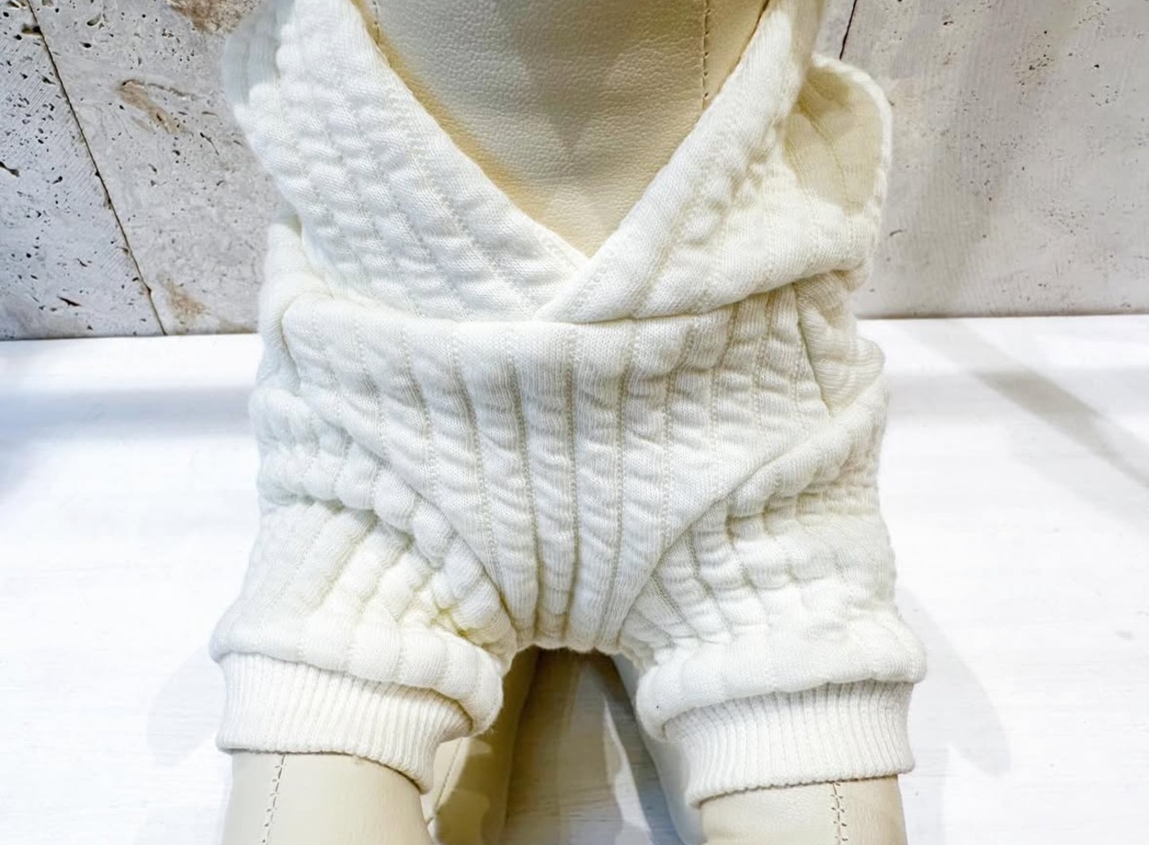 キルト生地を使用したワッペンフード付きパーカーになります。