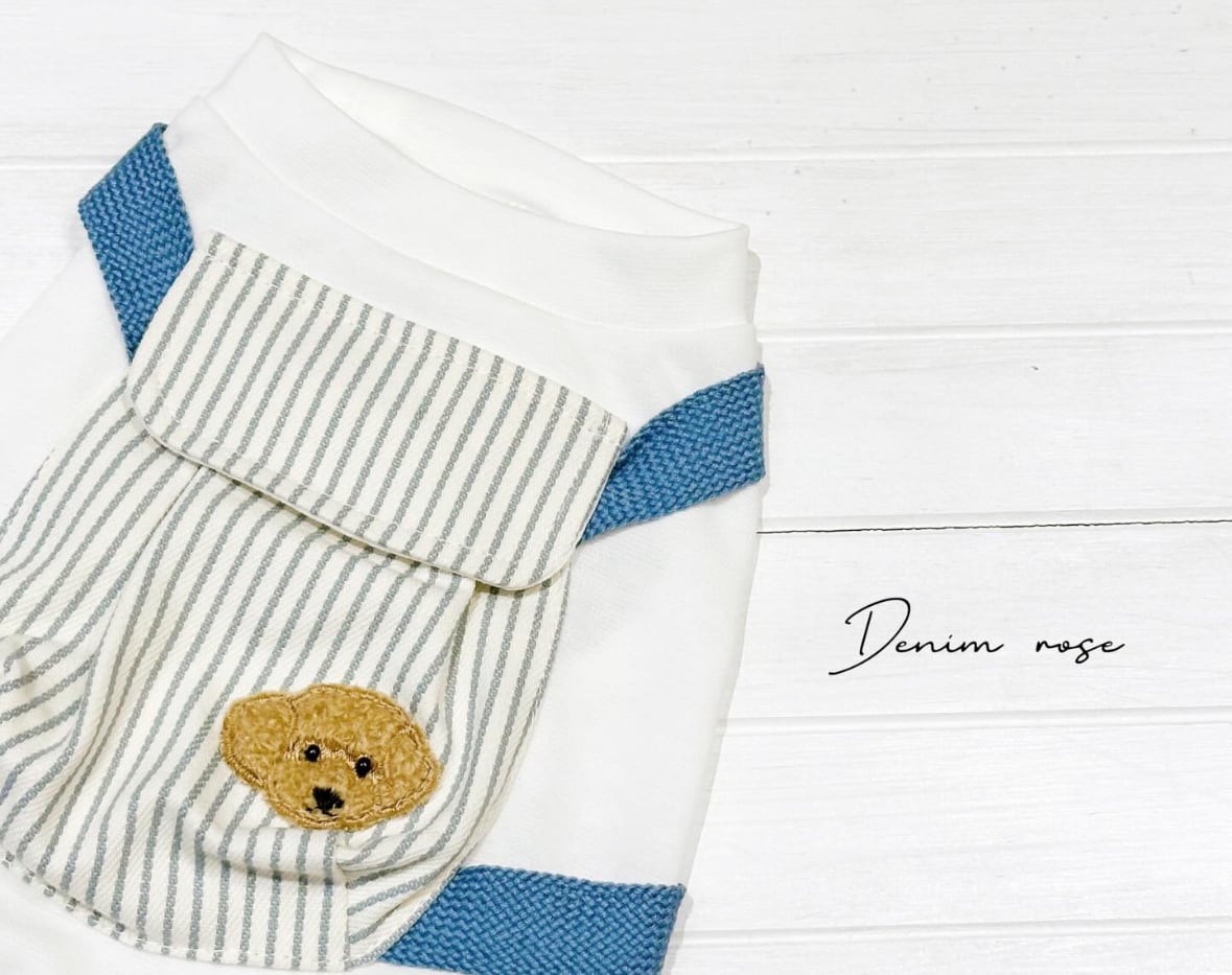 犬服用のワッペンヒッコリーリュックノースリーブになります。マジックテープ式のリュックの中に物が入れられるようになっており、【暑さ対策】に保冷剤もいれていただけます。あとは、飴ちゃんなど…♪
