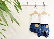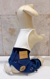 ワンポイントのワッペンとオリジナルの皮パッチが可愛い1枚です。
