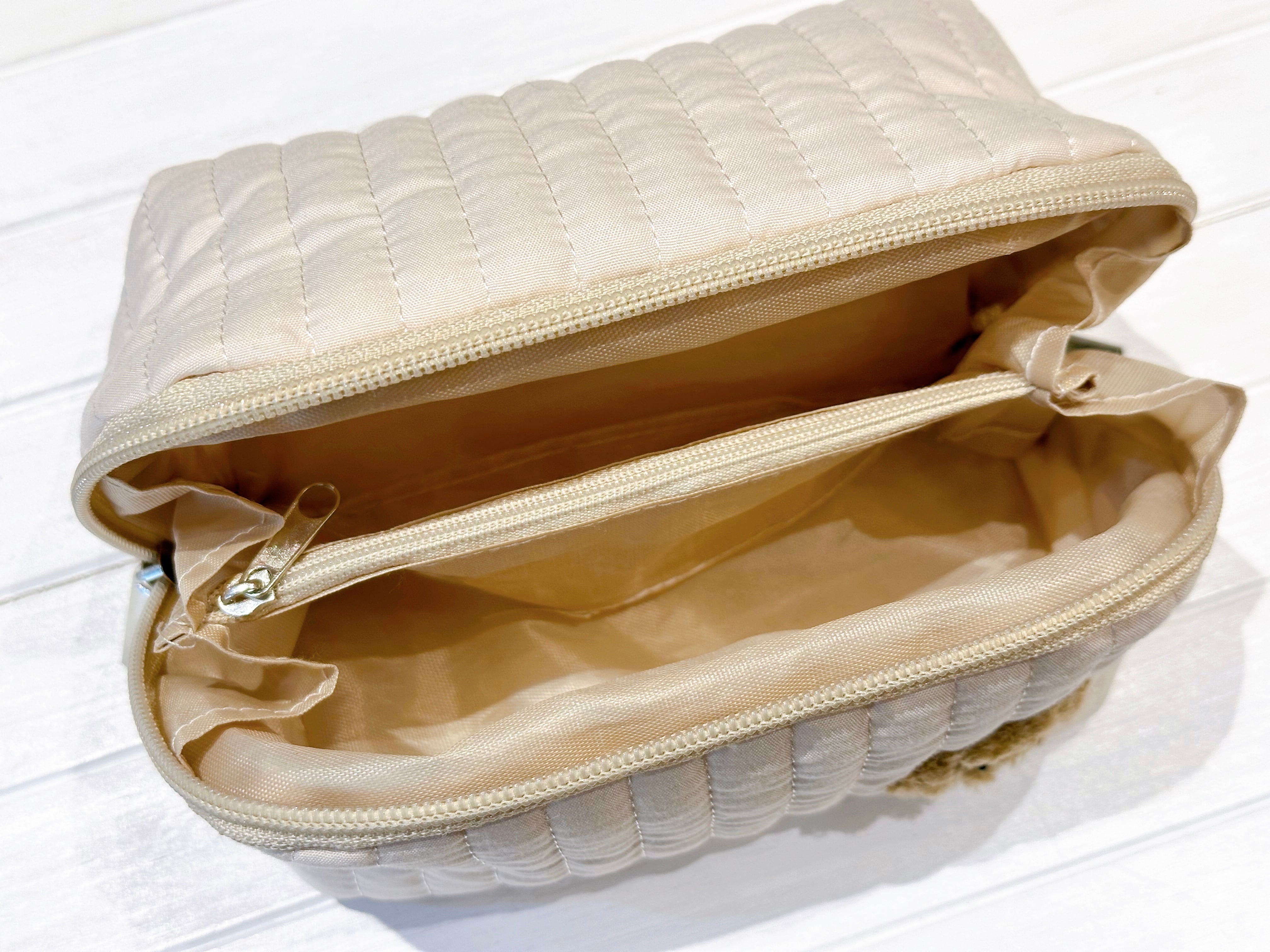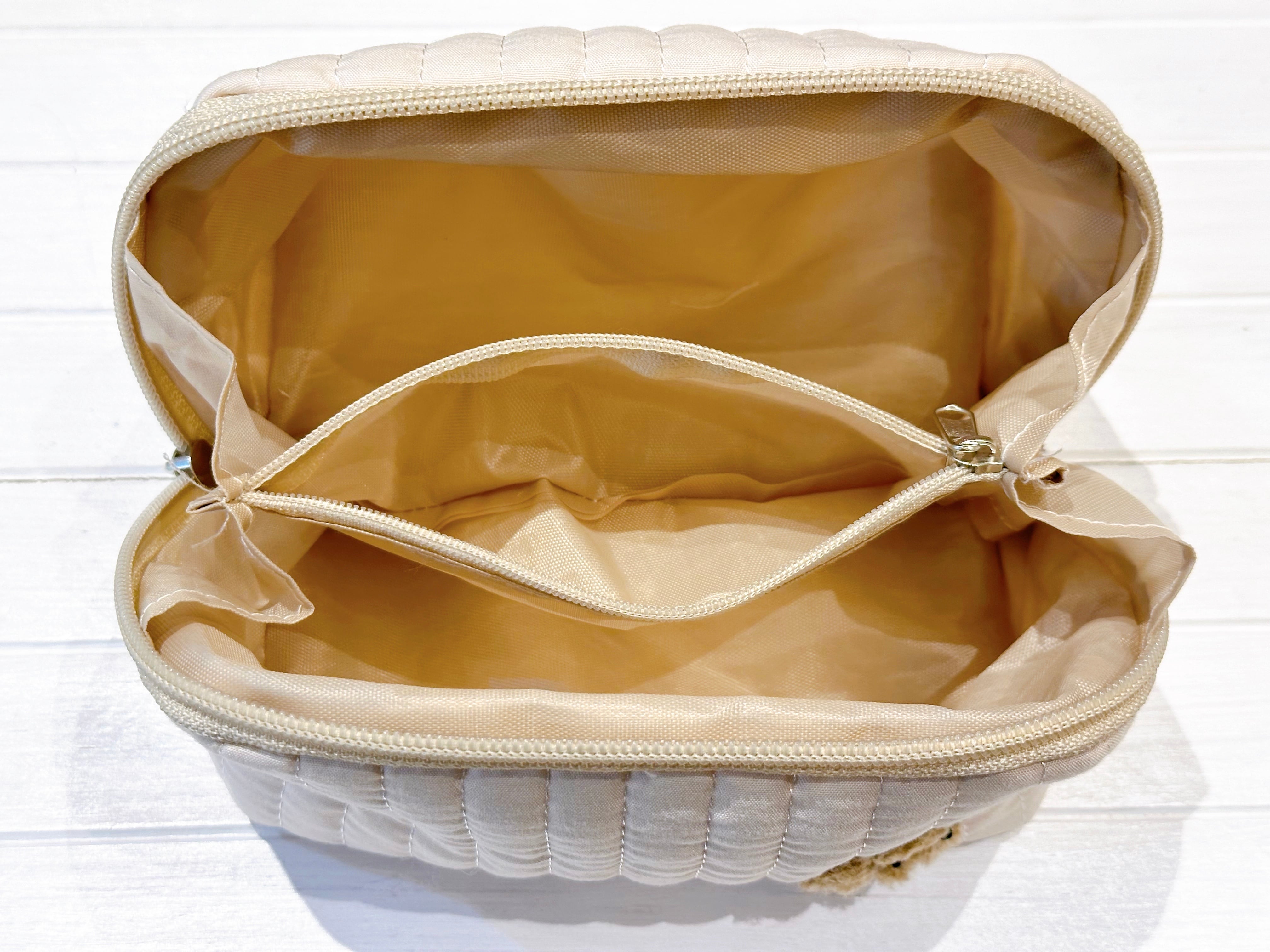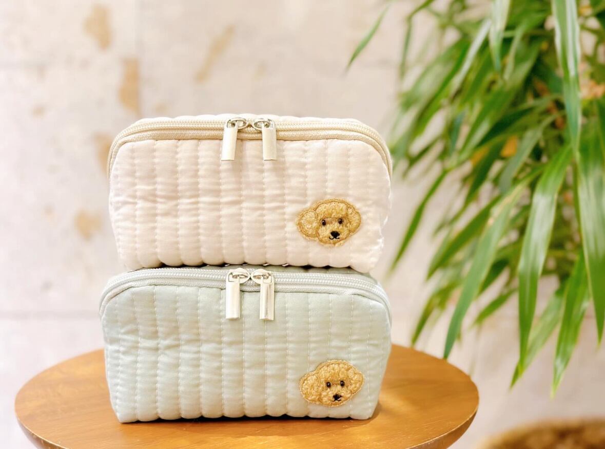 DENIM ROSEワッペンが付いている可愛いポーチです。他のポーチに比べファスナー口は大きく開きます。
