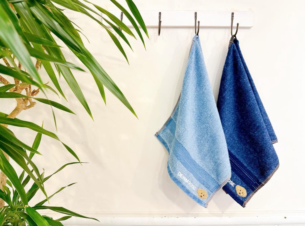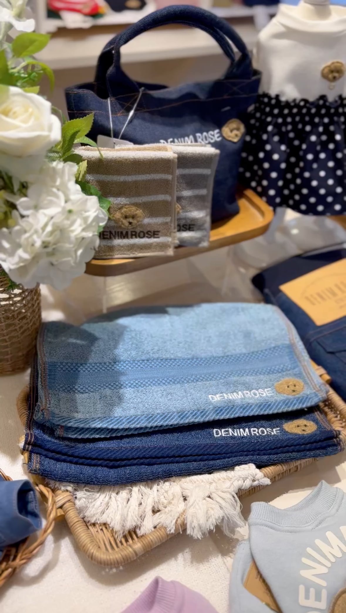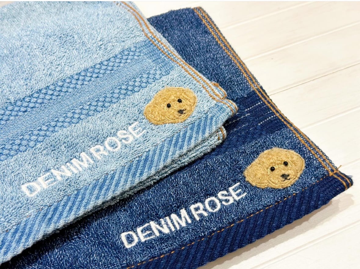デニム調のフェイスタオルにDENIM ROSE刺繍と