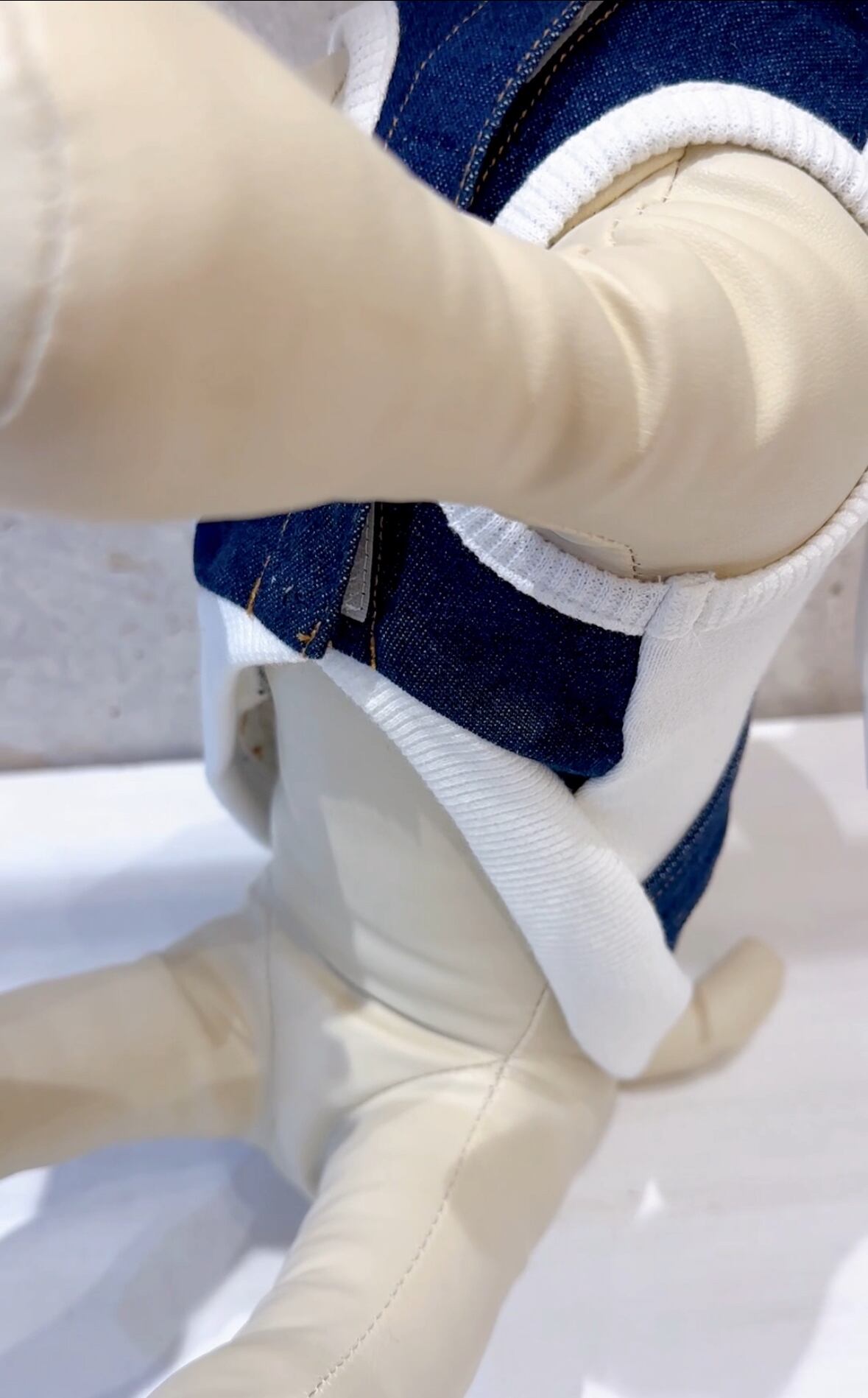 ※デニム生地と白い生地を強く擦り合わせないようご注意ください。摩擦による色移りの原因となります。