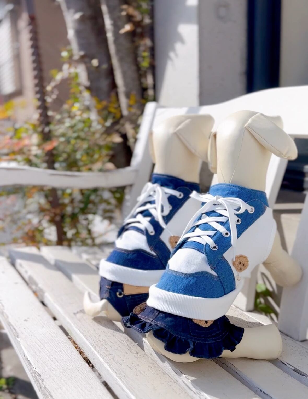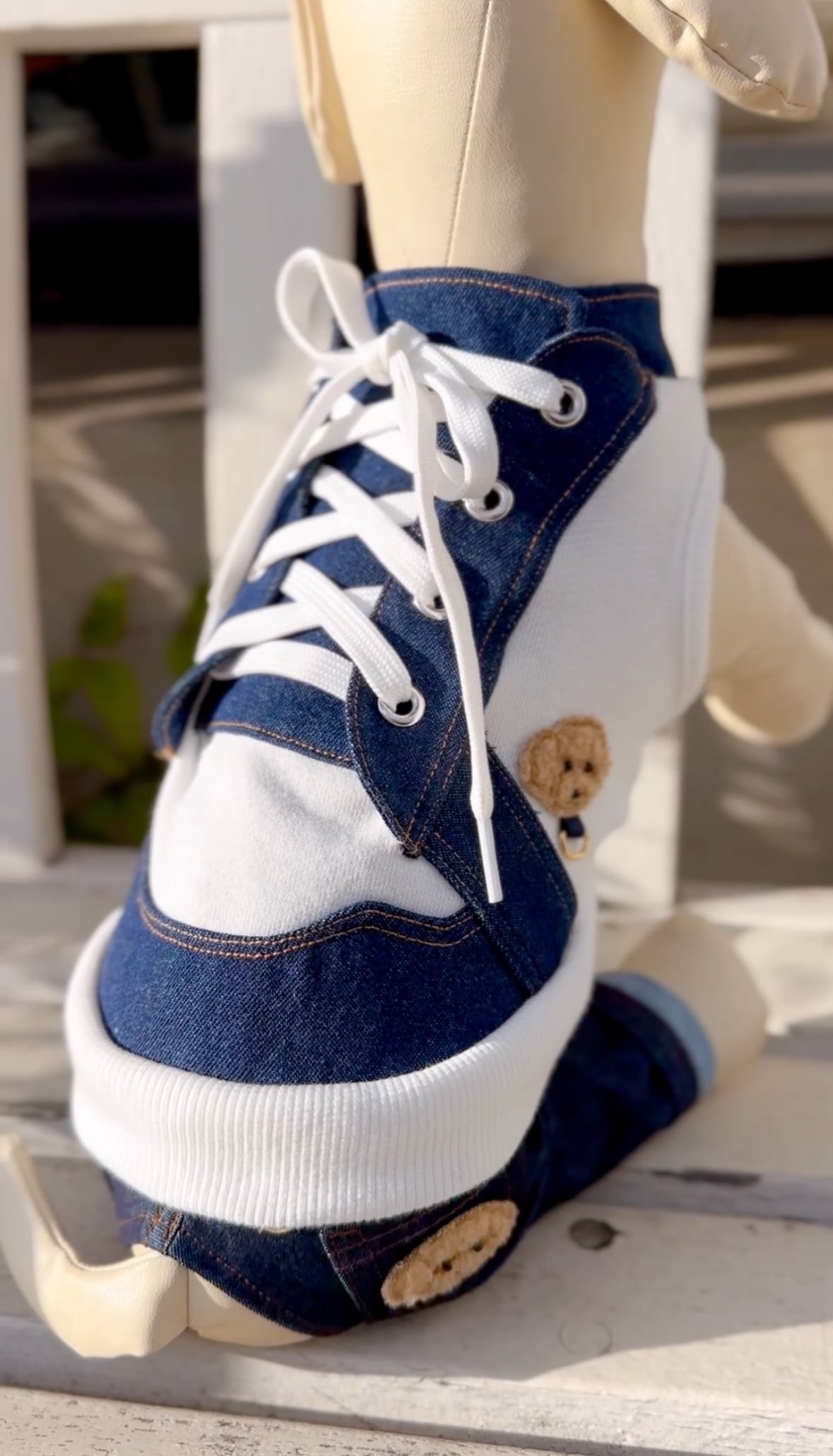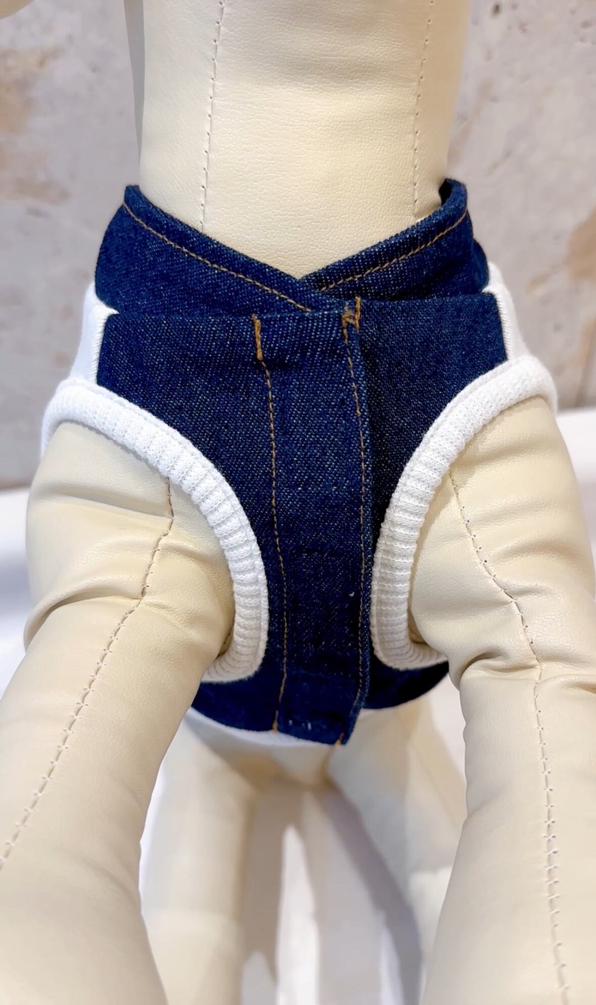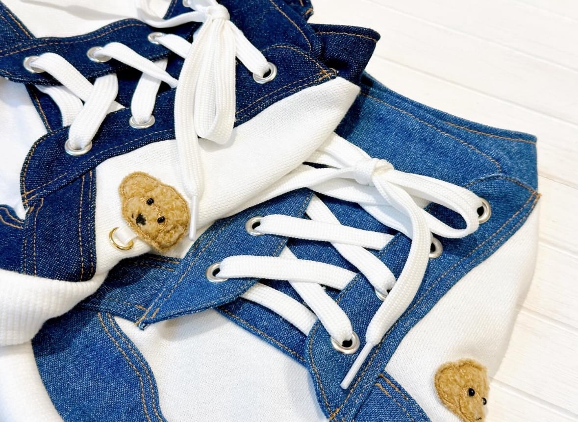 犬服用 のワッペンデニムスニーカーノースリーブです。こちらは【袖なし】になります。