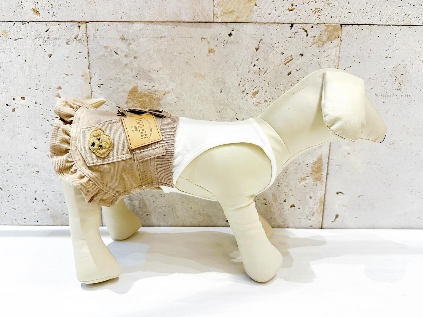 ワンポイントのワッペンとオリジナルの皮パッチが可愛い1枚です。
